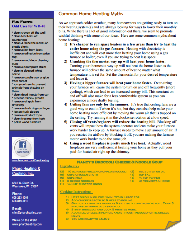 As we approach colder weather, many homeowners are getting ready to turn on their heating system(s) and are always looking for ways to lower their monthly bills. While there is a lot of good information out there, we seem to promote wishful thinking with some of our ideas. Here are some common myths about home heating: