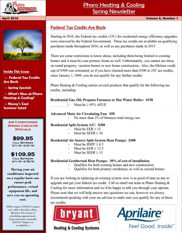 upgrade and get your federal tax credit. Call or email our team at Pharo Heating &